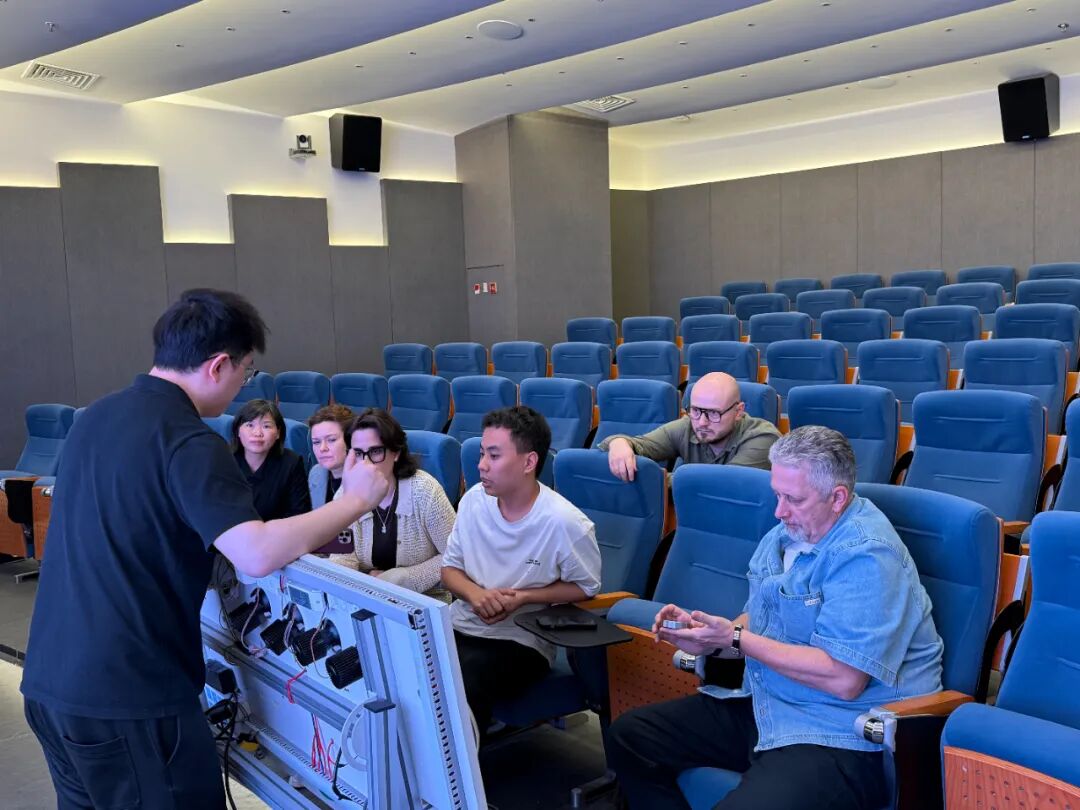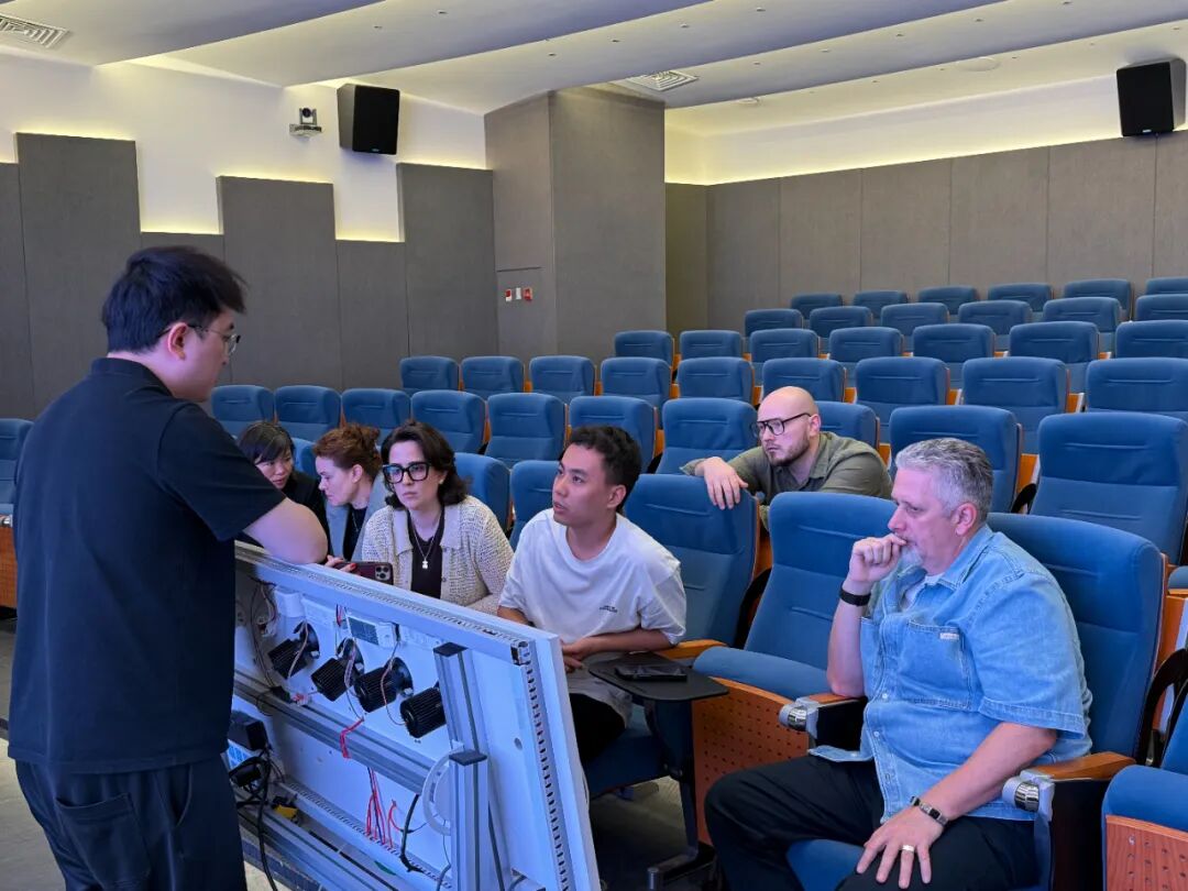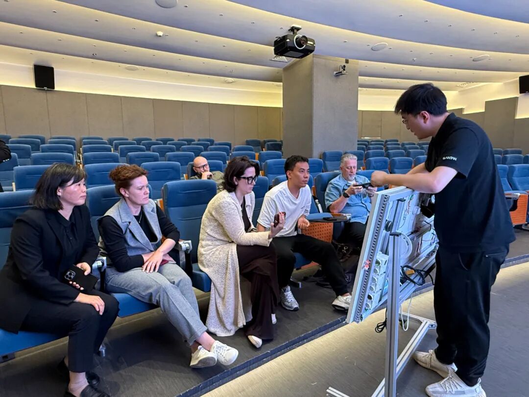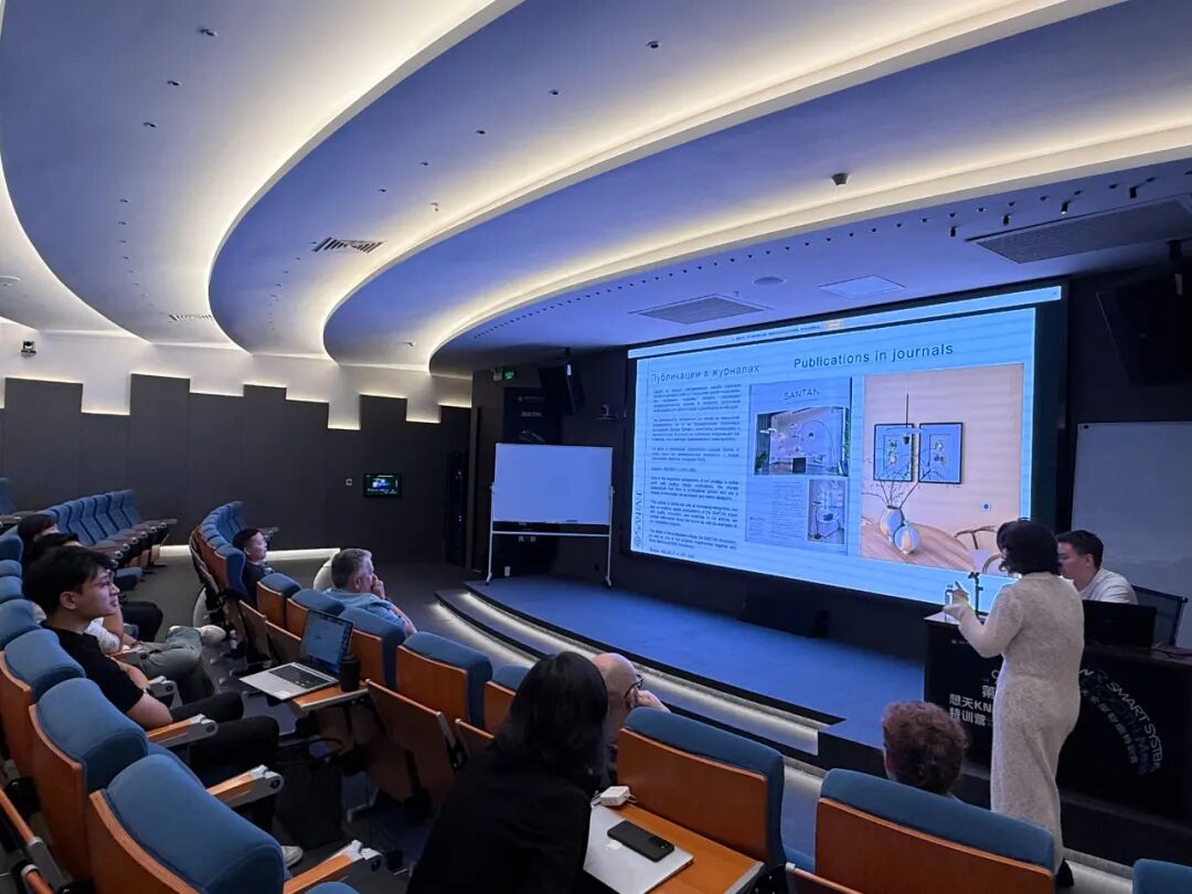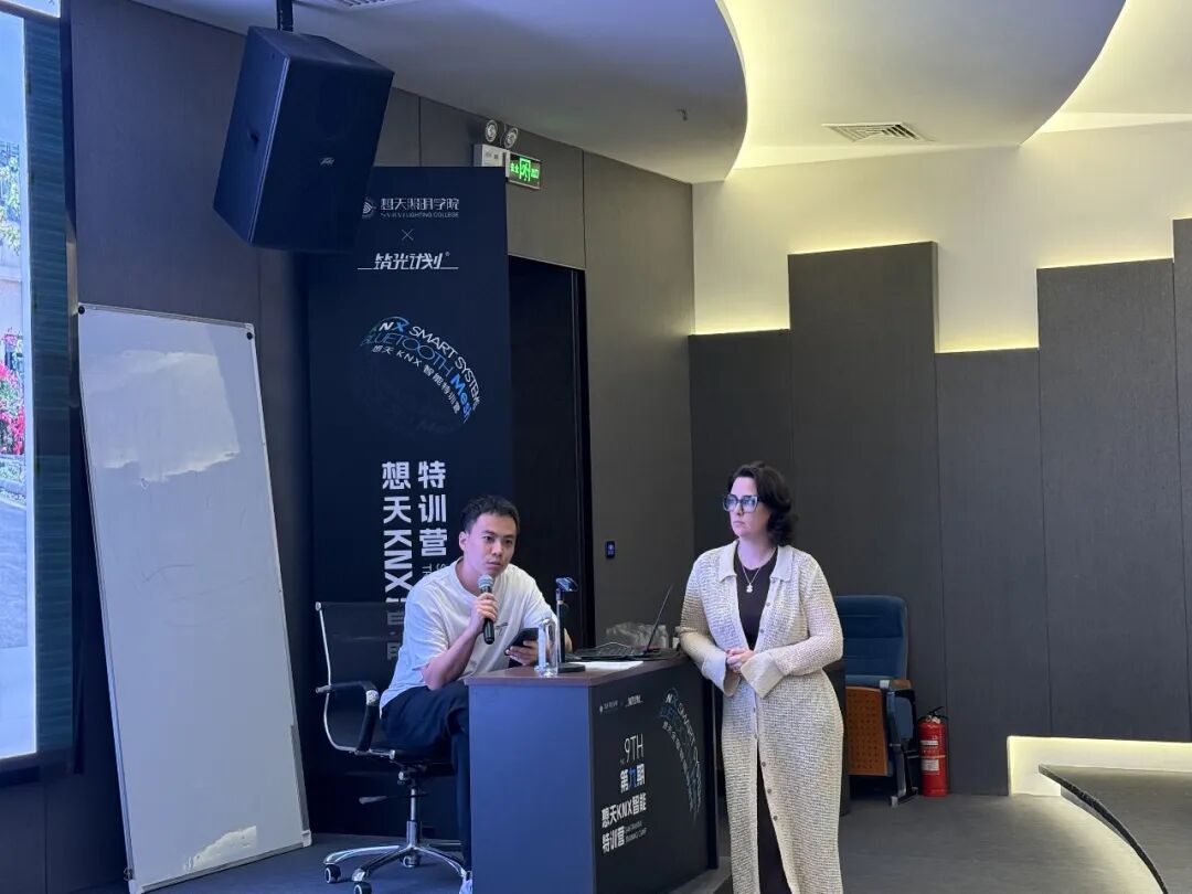 在技术分享环节中,想天智能分享主讲人古江老师为俄罗斯J&G集团团队详细讲解了SANTAN想天的KNX系统逻辑、产品体系以及近期上市的新品。现场讨论热烈,围绕应用场景、市场需求和技术互通展开了深入交流。此环节进一步加固了双方在技术层面的合作基础,也为未来的项目共创提供了更多可能性。