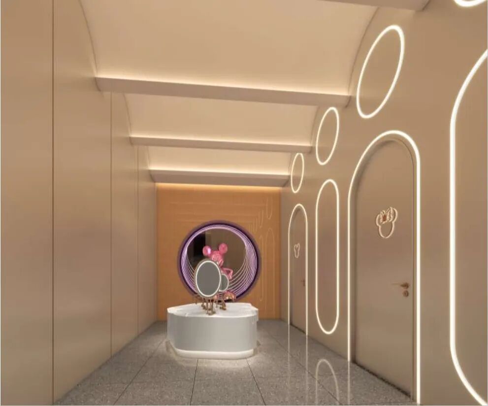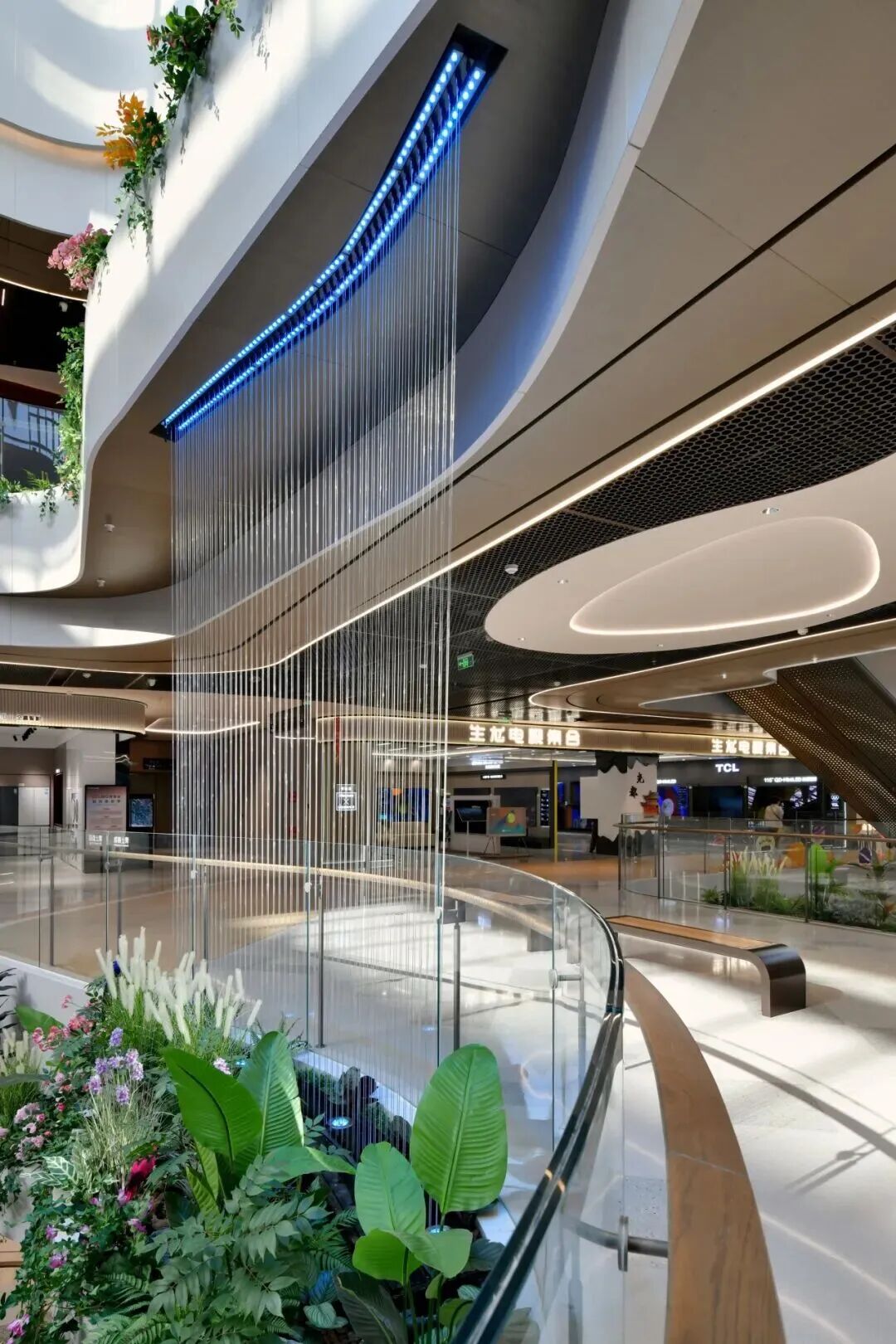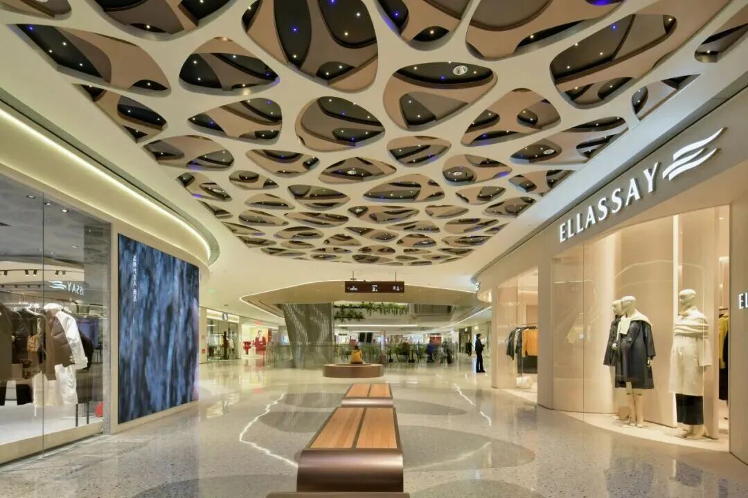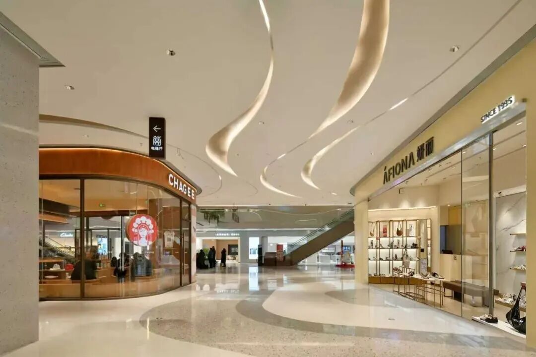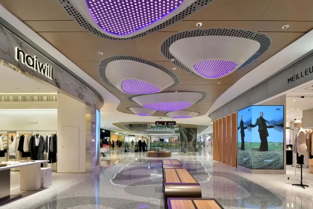 项目创新性植入“冰洞、飞瀑、溪流”等自然奇观意象,并通过分层演绎冰裂、冰墩、气泡冰、冰锥等冰系元素,构建出“自然肌理 + 现代质感 + 功能实用”的复合体验。光影在其中既是表现工具,也是情绪载体,让消费者在购物过程中短暂抽离城市喧嚣。,邂逅“一步一景、一境一诗”的世外桃源。