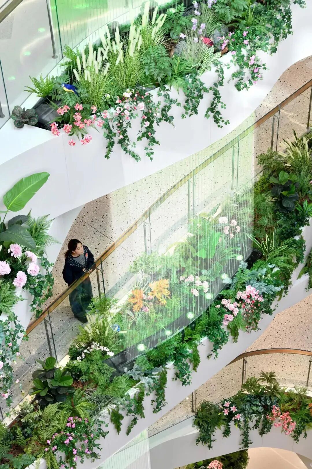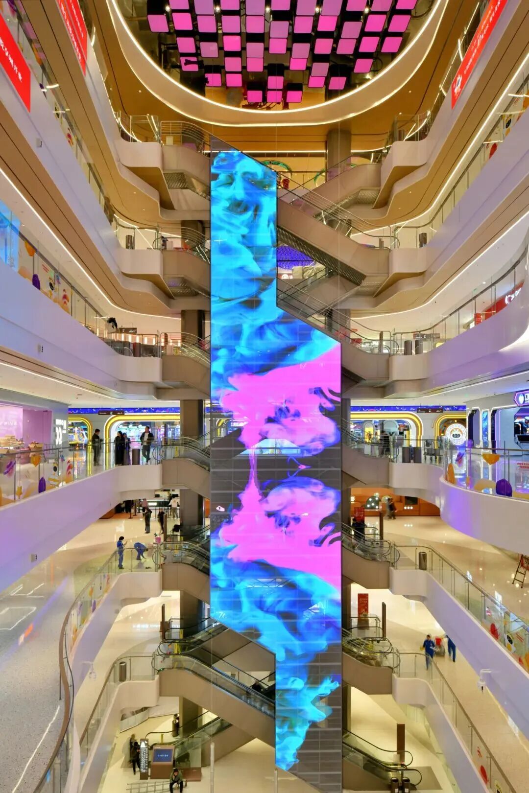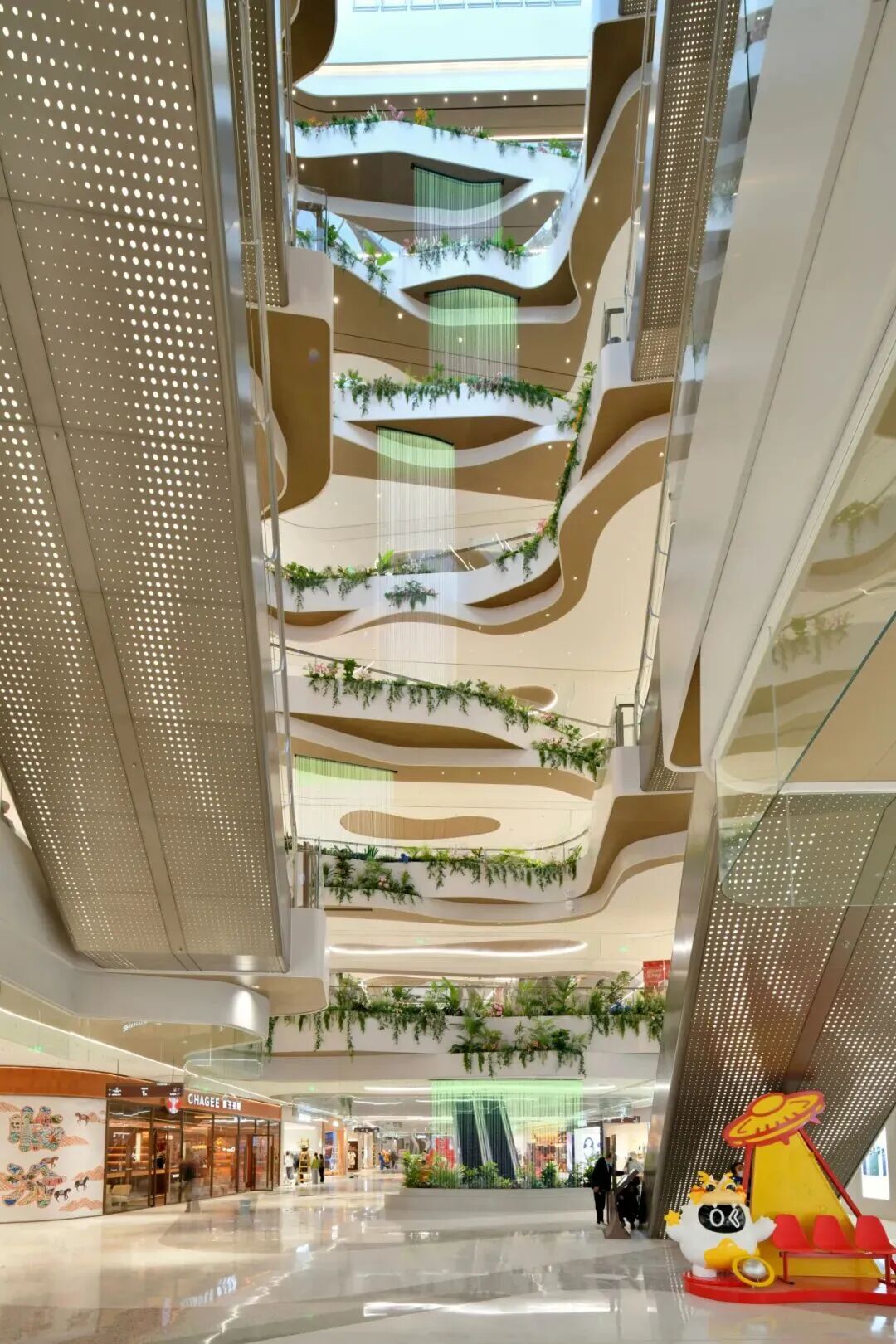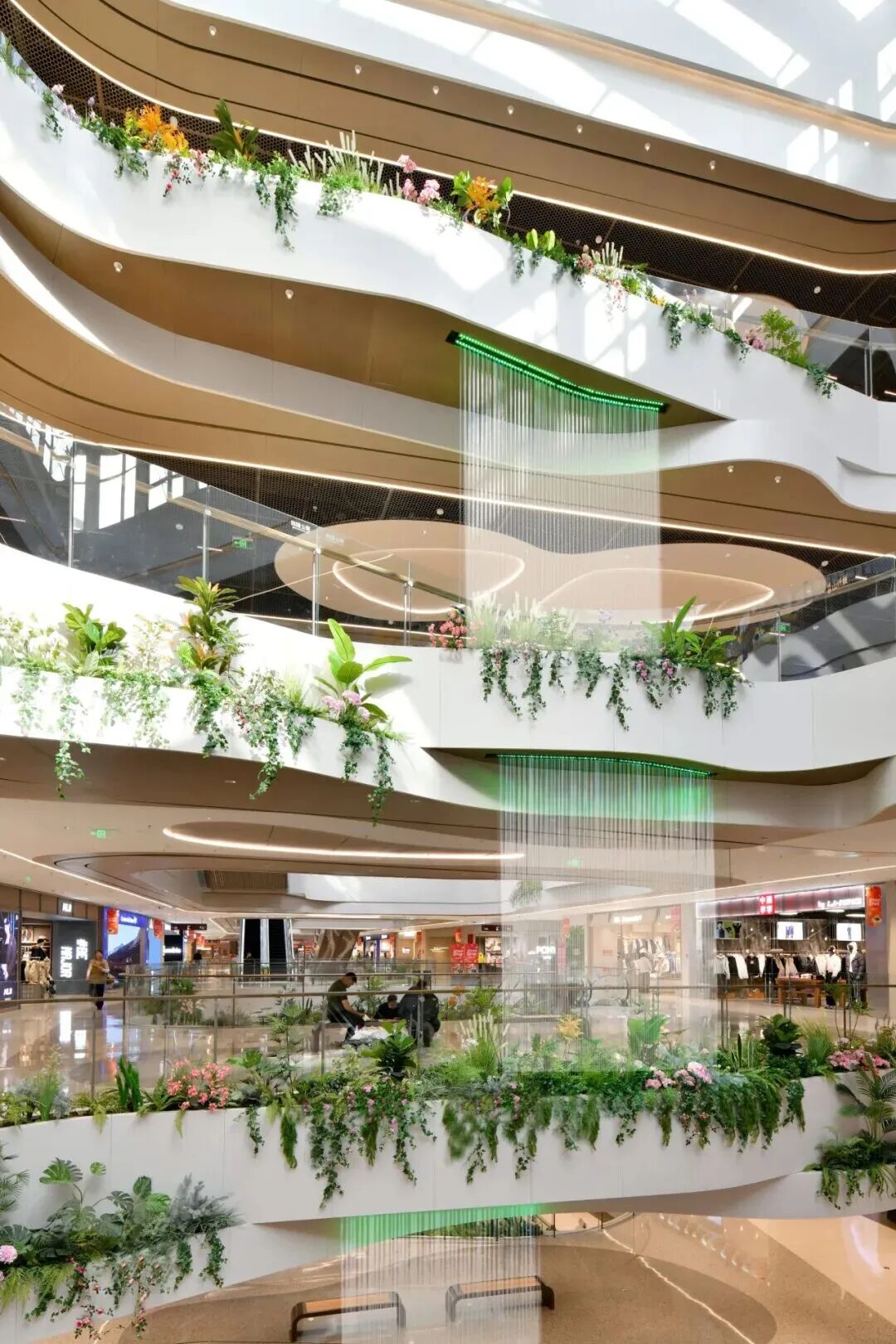 项目创新性植入“冰洞、飞瀑、溪流”等自然奇观意象,并通过分层演绎冰裂、冰墩、气泡冰、冰锥等冰系元素,构建出“自然肌理 + 现代质感 + 功能实用”的复合体验。光影在其中既是表现工具,也是情绪载体,让消费者在购物过程中短暂抽离城市喧嚣。,邂逅“一步一景、一境一诗”的世外桃源。